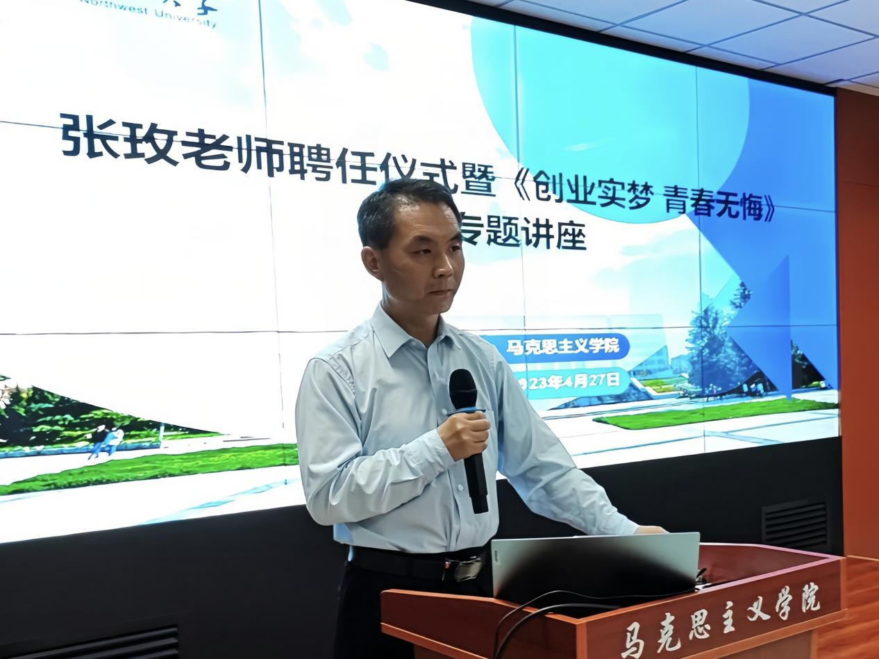 4月27日晚,张玫老师聘任仪式暨学生就业创业能力提升专题讲座在亚博官网学术报告厅举办。西安华浦水处理设备有限公司、陕西华浦环保科技有限公司总裁,陕西省青年五四奖章获得者张玫,亚博取款曝顾秒到账学生就业创业指导服务中心常务副主任丁莹莹、亚博官网党委副书记邵平、亚博官网中国近现代史纲要教研部主任苟昭赟及亚博官网研究生参加活动。本次活动由院团委书记刘娟主持。